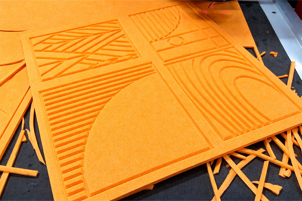 *Thickness ranges above are indicative for acoustic felt panels used in interiors. We typically cut rigid and semi-rigid acoustic felt sheet on our digital knife tables. For composite acoustic panels with special backings, share product data so we can confirm the best cutting process.