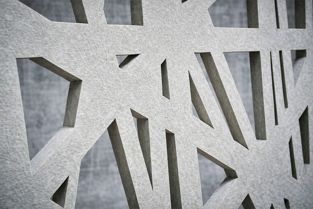 We cut acoustic felt panels and acoustic composites for a wide range of interior projects where sound control, aesthetics and fast install matter. Flat parts only — no forming in-house. Digital knife cutting gives clean edges without fraying, ideal for visible feature panels.