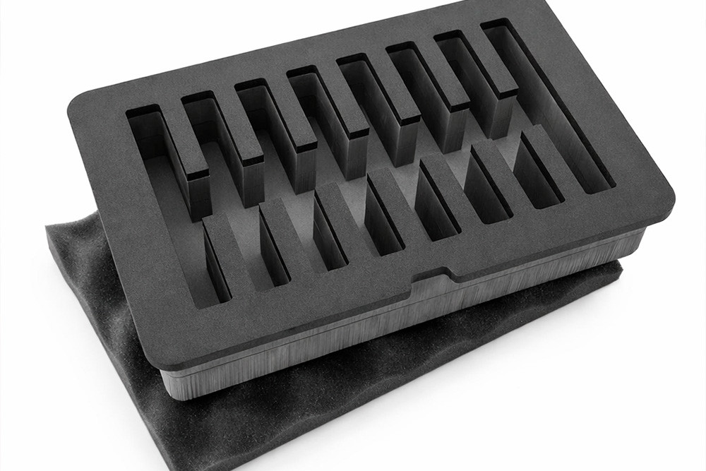 We can cut foam sheets and boards up to 1500 mm × 3000 mm. Larger inserts can be split into sections for easier transport and assembly inside the case.