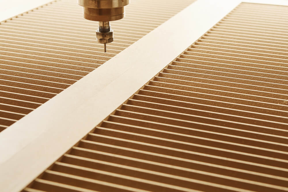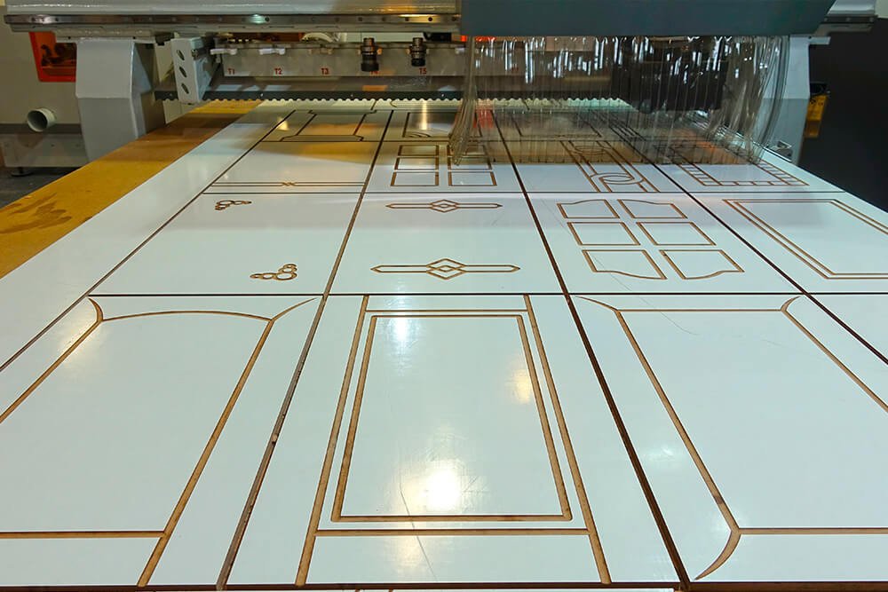 Flat-part cutting for joinery, cabinetry and shopfitting using CNC routers, CO₂ lasers and digital knife tables. We process boards and sheets up to 3000 × 1500 mm in timber-based panels, plastics and metals — supplying flat components only, ready for your own edge-banding, assembly and installation.