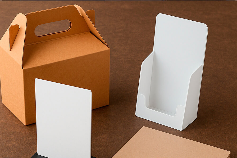 Typical materials we cut for packaging, POS and retail display work.
