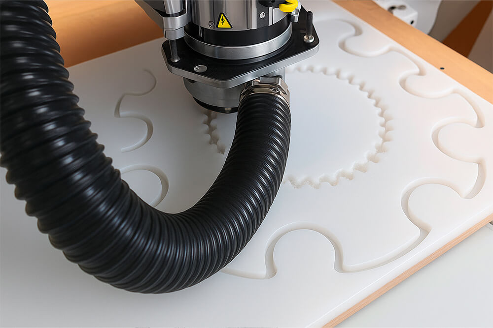 Router-cut materials are processed on our CNC router where laser is not suitable.