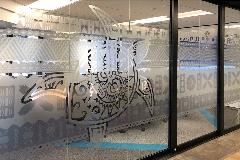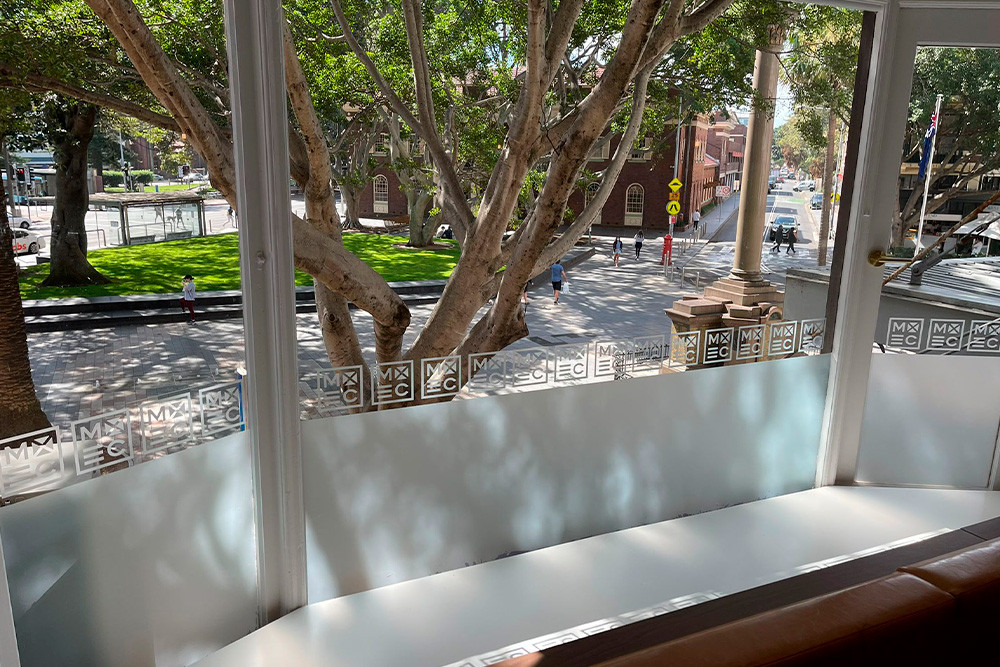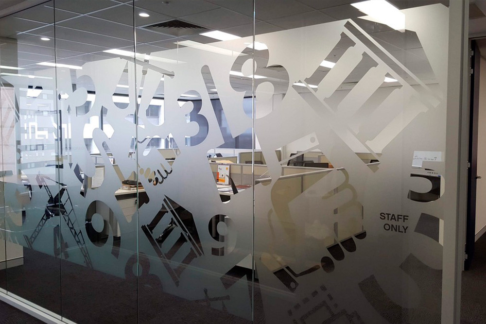 Frosted film is often paired with signage, graphics, wall finishes and joinery. Because we also cut rigid panels and other materials, we can help align glazing graphics with broader signage and wayfinding schemes.