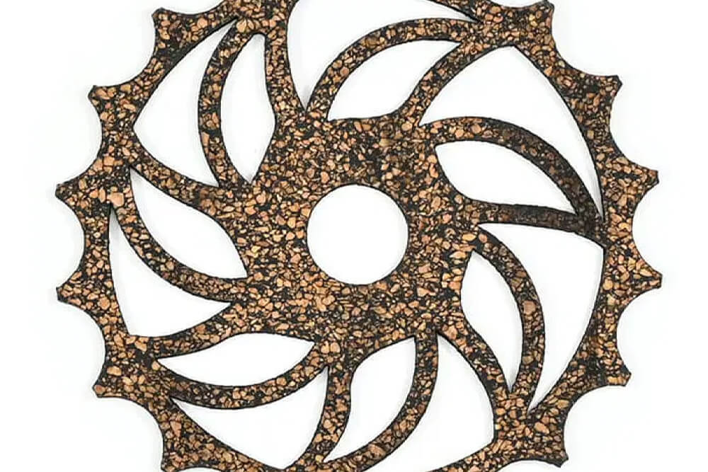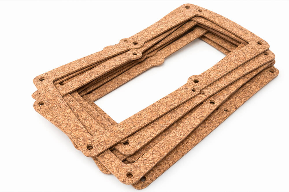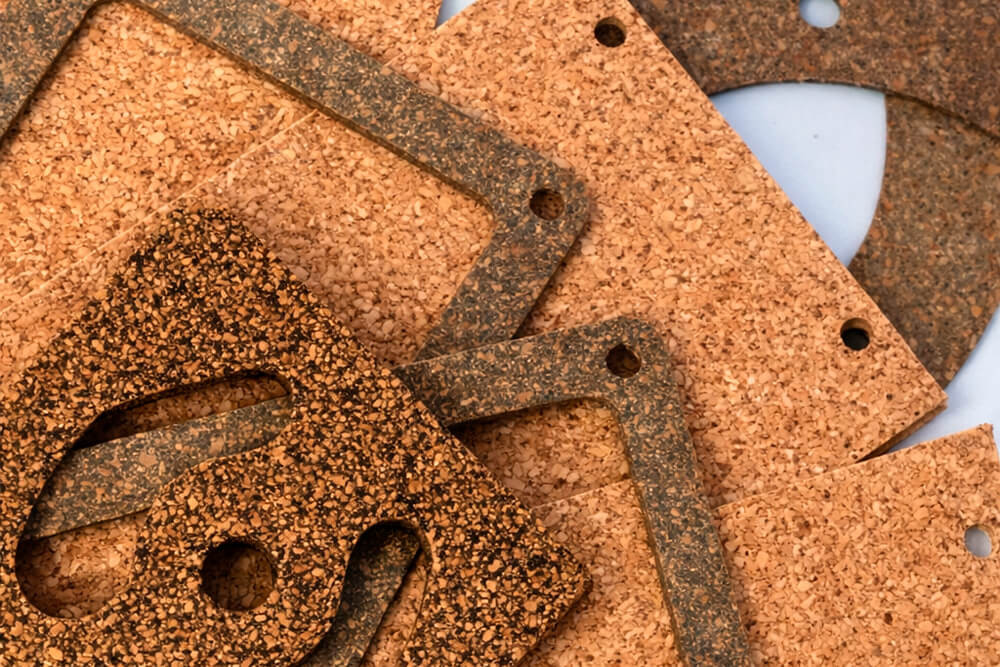 Gasket grade cork uses fine cork granules bound with elastomeric binders, often blended with rubber to improve fuel and oil resistance. It compresses under load, recovers well and conforms to irregular surfaces. We tune cutting methods around the grade, thickness and compressibility of your cork material.